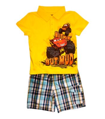 Cars Boys' 2T-4T Yellow 2-pc. Polo and Shorts Set Kid's ,Apparel Sets. One look you ll both agree on. He loves the cartoon and you ll adore the style of this Cars 2-piece polo and shorts set. This comfy set features a short sleeve polo T-shirt with Nuthin But Mud screen print and plaid cargo shorts to match. You ll both be happy when he puts this set on. Yellow 2-pc. Shorts set Short sleeve polo Nuthin But Mud screenprint Plaid cargo shorts 100% Cotton Machine washable Imported